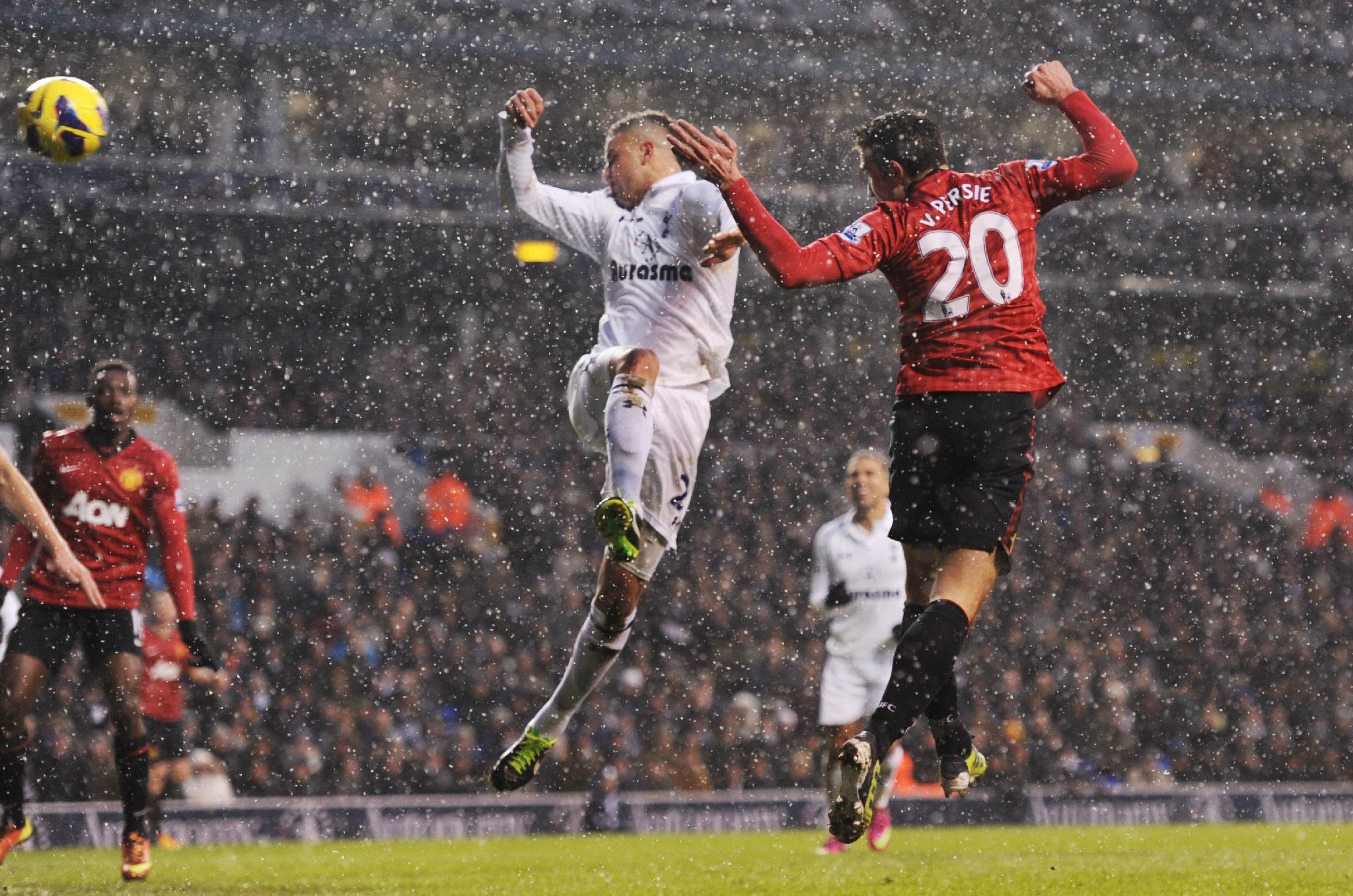 From there, just as the snow stormed in came Tottenham's aggressive and fervent search for the equalizer. In the 50th minute, Dempsey beat United's back line but his shot saved by De Gea. Bale's cross at the 63rd minute was cleared but only as far as Dempsey who once again missed. United tried to stage a counter but Welbeck shot wide a cross from Rooney at 67th minute.